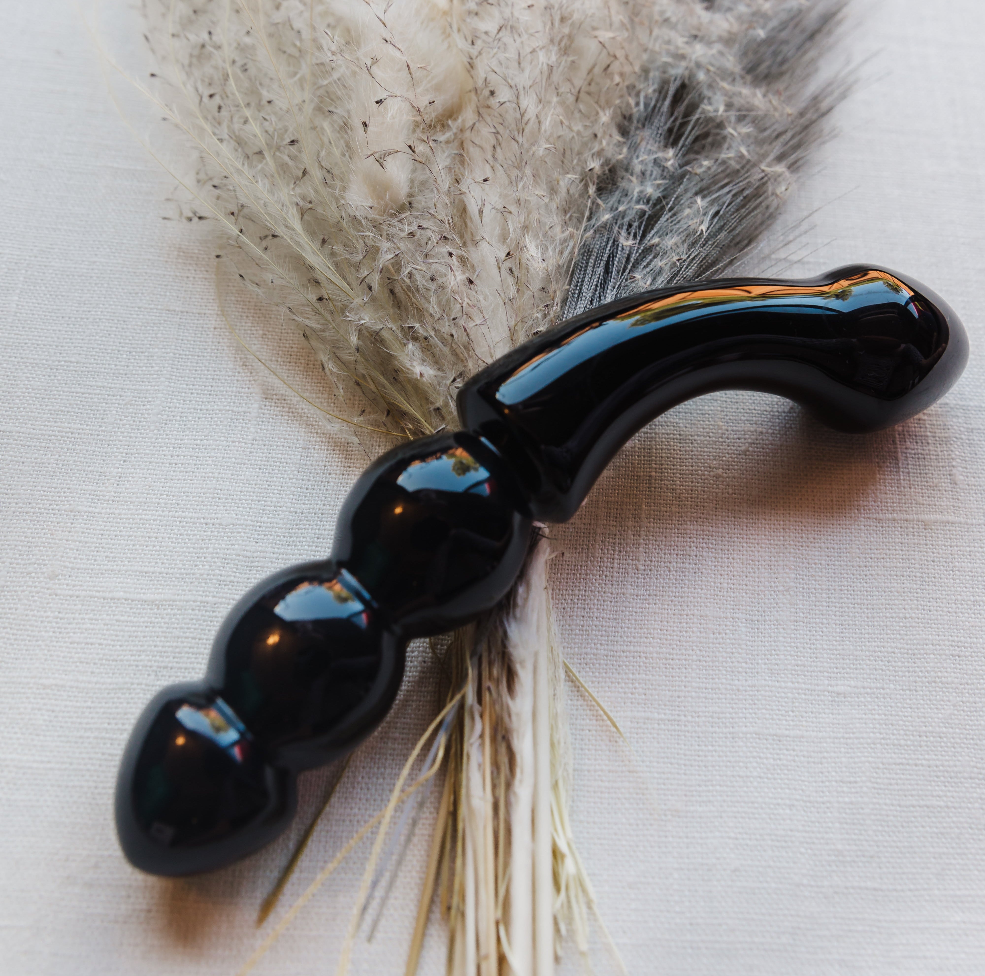Explore the powerful healing vibrations of our Obsidian yoni wand. Infusing strong healing energy, Obsidian can bring you to new realms of pleasure you never new existed. Target pleasure points with it's sleek crescent curve or bring on full body orgasms using the beaded end to stimulate the vaginal walls. The obsidian dildo is the perfect gem to elevate any self love session or couples sensual rendezvous.